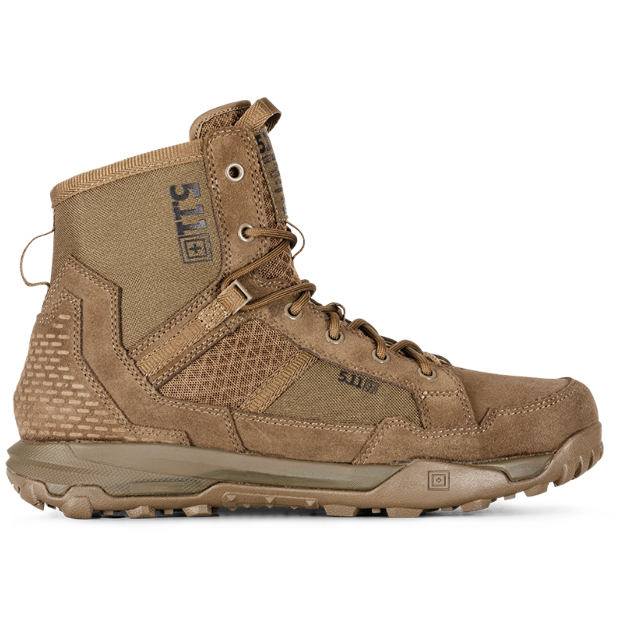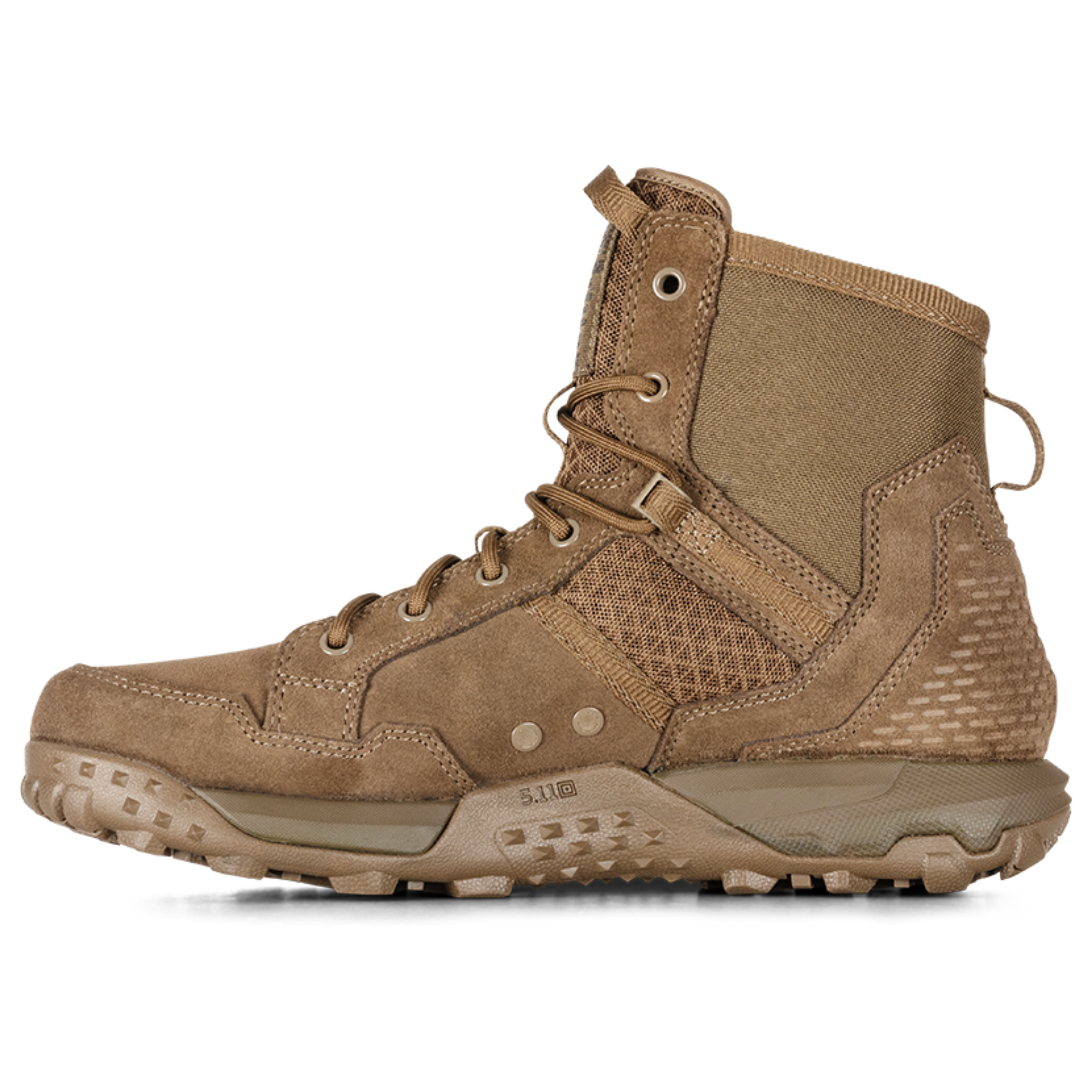At the core of the design is 5.11’s All Terrain Load Assistance System (A.T.L.A.S.), a technology that works with your body and your gear weight to provide enhanced stability, support, and energy return. Paired with Echo Foam and Force Foam cushioning, each step feels supported and responsive, even under heavy load.