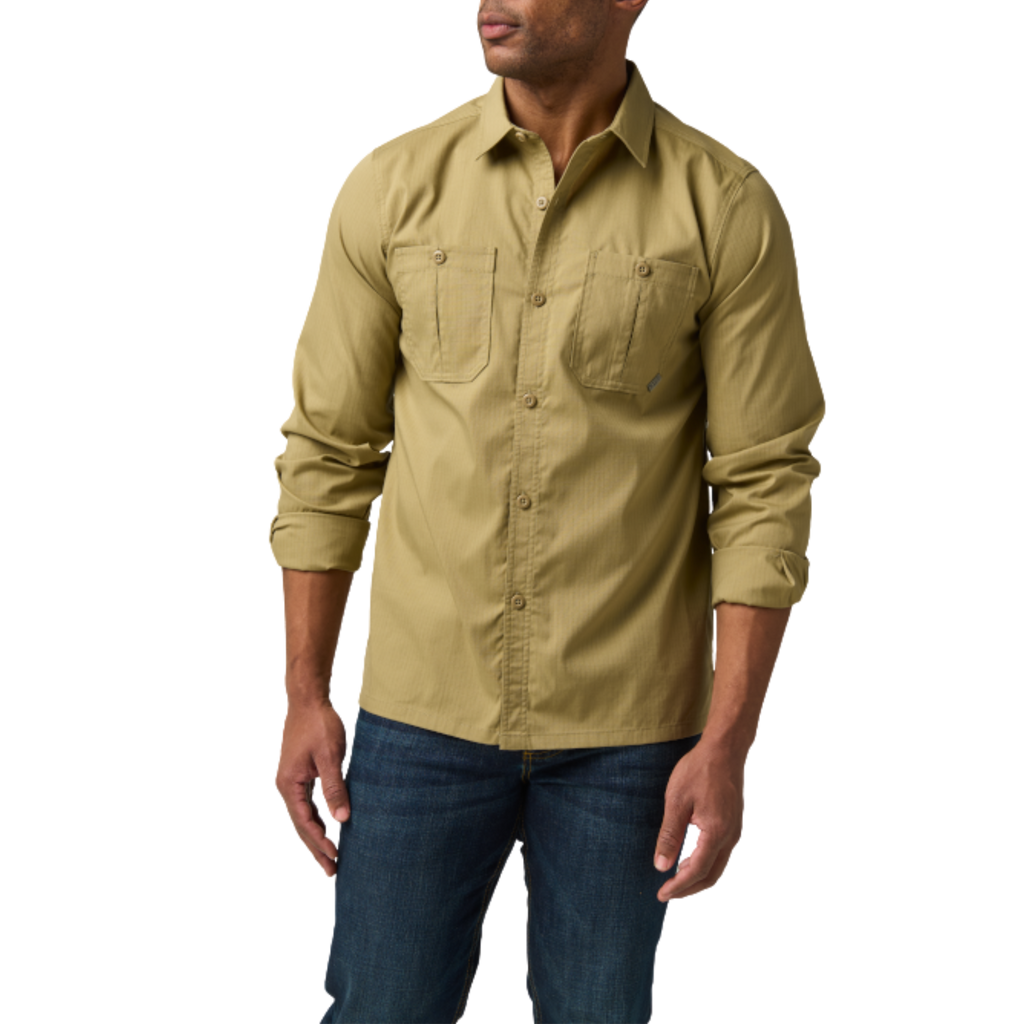 Built for tough, all-day wear, the Landen Shirt combines a 75% polyester / 25% cotton FlexLite ripstop blend with functional features designed for demanding environments. Chest patch pockets include an inverted pleat for extra storage, while the left chest pocket features 5.11’s Ready Loop™ to secure your phone or small tools. A fold-down collar with collar stand keeps a sharp, professional look even during long shifts.