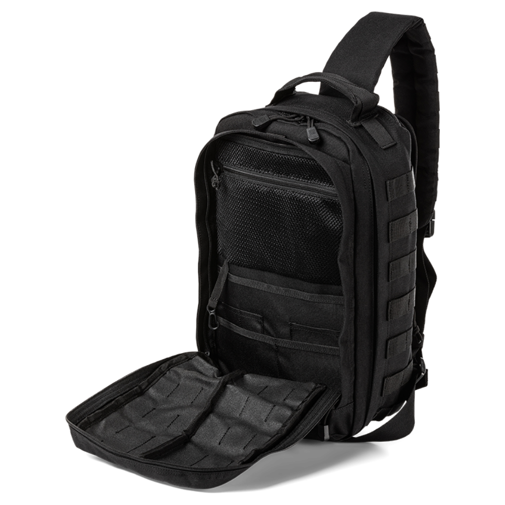 The RUSH MOAB™ 8 is a 13-liter sling pack engineered for superior versatility and rapid access. Designed with a slim profile for everyday carry (EDC) or day trips, it features an ambidextrous shoulder strap system that allows for comfortable left- or right-side wear.