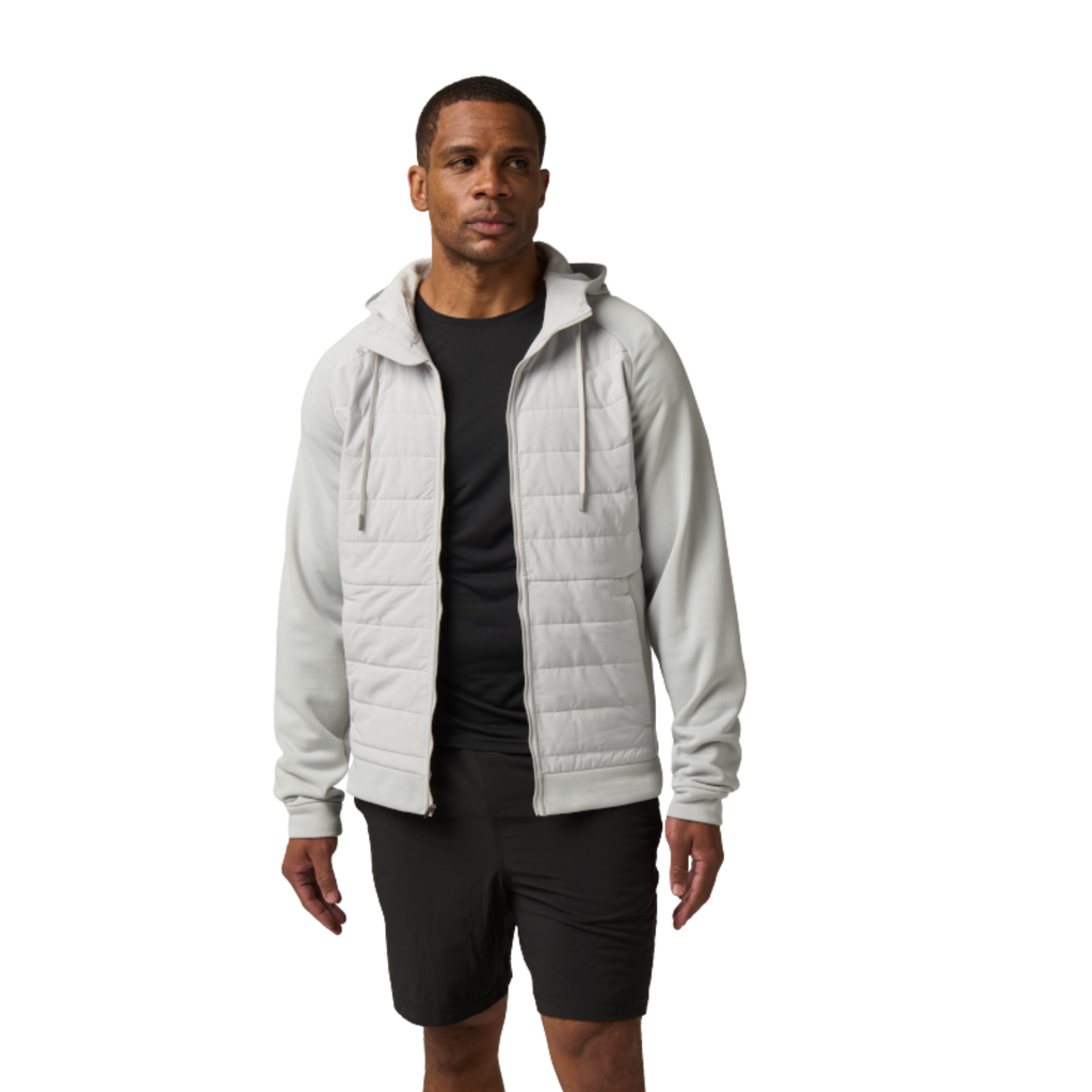 Designed for pre- and post-workout wear, the PT-R Arrive Hybrid Hoodie combines lightweight PrimaLoft® insulation with quilted panels and fleece construction for all-day warmth and mobility. Store essentials safely in zippered kangaroo pockets plus a hidden security pocket for ID, cash, or cards. The sculpted, three-panel hood with drawcords and chin guard ensures coverage and comfort, whether you’re warming up, training, or cooling down.